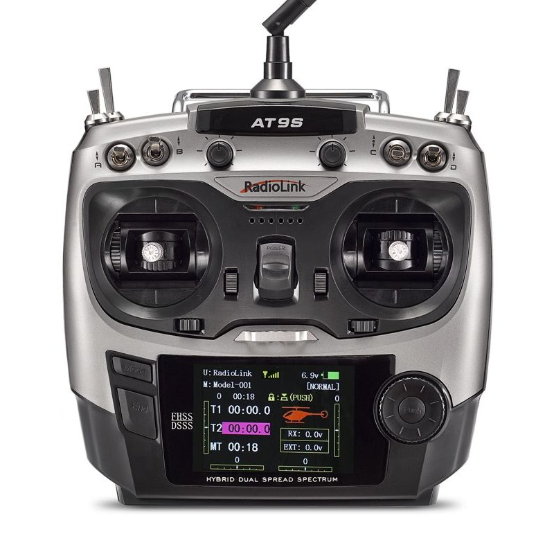 System transmisji: AT9S wykorzystuje unikalną technologię Radiolink wykorzystującą jednoczesną transmisję DSSS+FHSS ze przeskakiwaniem częstotliwości, aby zapewnić duży zasięg, niezawodność i doskonałą odporność na zakłócenia. System umożliwia transmisję danych telemetrycznych z odbiornika i ich wyświetlanie na wyświetlaczu nadajnika.