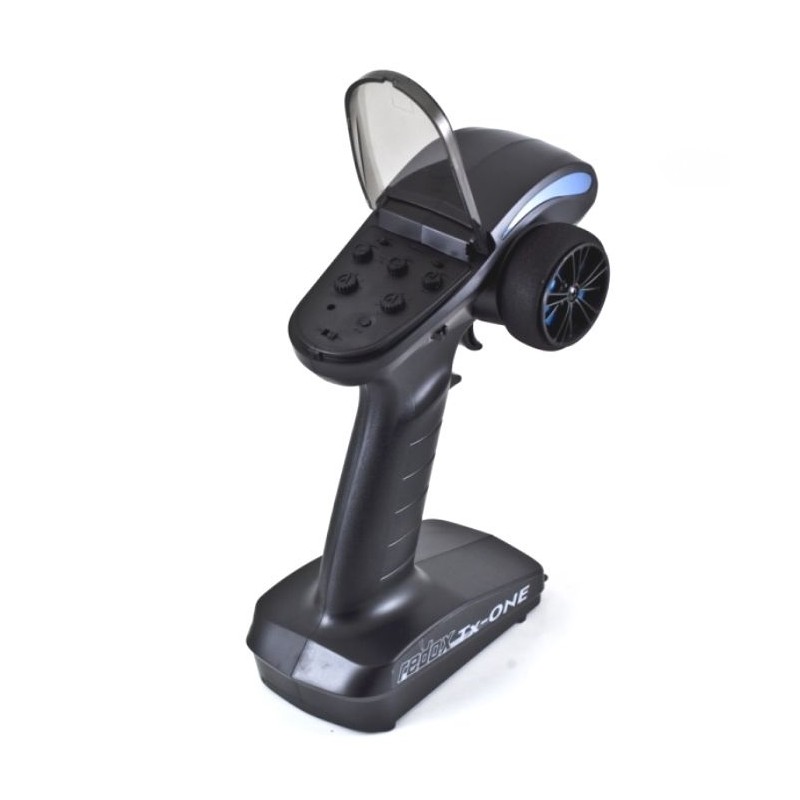 3-kanałowy nadajnik modelarski Redox Tx-ONE przeznaczony do pracy ze zdalnie sterowanymi modelami samochodów i motorówek (i innych łodzi). Lekki i poręczny, intuicyjny i prosty w użyciu, idealny dla początkujących i średnio-zaawansowanych modelarzy. Dzięki ergonomicznie zaprojektowanej rękojeści, nadaje się zarówno dla młodszych jak i starszych użytkowników (wygodny uchwyt niezależnie od rozmiaru dłoni). Koło kierownicy wyłożone miękką i dobrze "przyczepną" do palców pianką zapewniającą precyzję sterowania.
