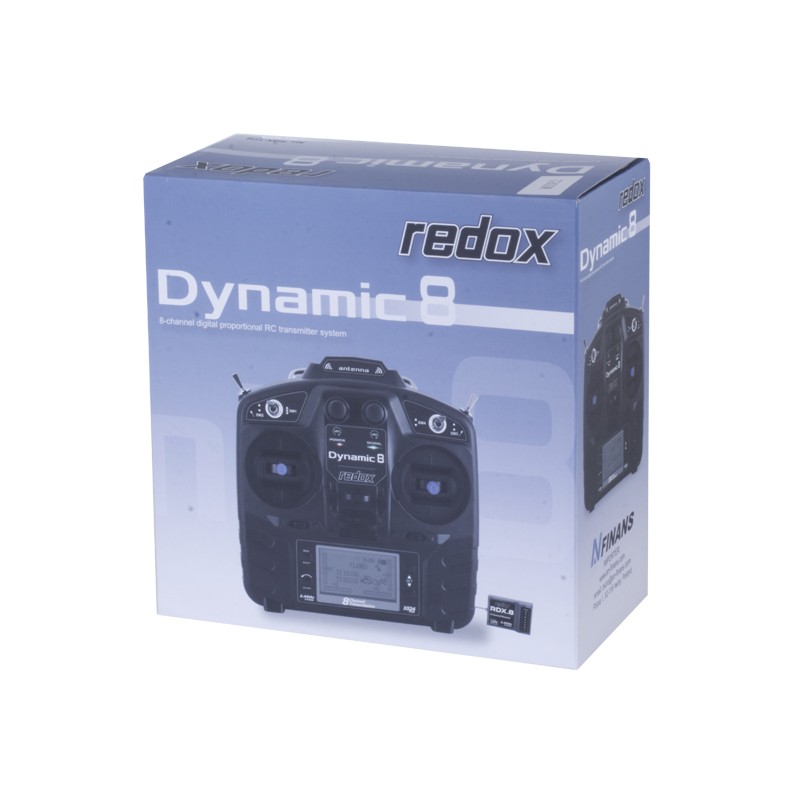 Redox DYNAMIC 8 to uniwersalny, 8-kanałowy cyfrowy nadajnik modelarski, oferowany w komplecie z kompatybilnym odbiornikiem Redox RDX.8.