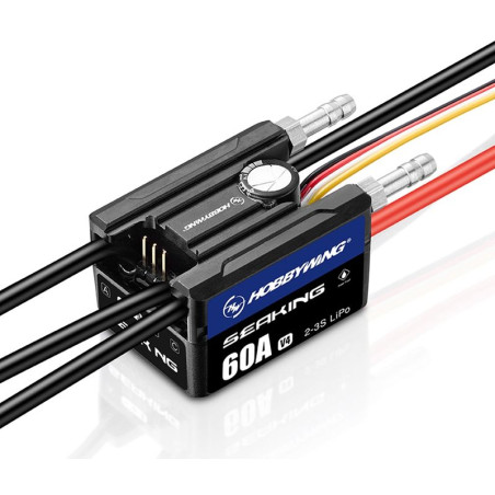 Najlepszy programowalny mikroprocesorowy sterownik z chłodzeniem wodnym do bezszczotkowych, bezczujnikowych silników prądu przemiennego, zaprojektowany przy użyciu najnowszej technologii półprzewodnikowej o doskonałej wydajności i rozbudowanych opcjach programowania i regulacji do użytku wyścigowego i rekreacyjnego. Służy do sterowania prędkością silników elektrycznych prądu przemiennego w łodziach motorowych i modelach zasilanych bateriami LiPo. Został zaprojektowany z myślą o wysokiej długoterminowej nośności i trwałości, co jest wymagane w modelach wyścigowych przy minimalnej wadze. Instalacja i użytkowanie są znacznie ułatwione dzięki dokładnej ochronie przed wnikaniem wody i chłodzeniu wodnemu. Jest wyposażony w wydajny stabilizator mocy SBEC o przełączanym trybie pracy z wybieralnym napięciem wyjściowym, który dostarcza zasilanie do odbiornika i serwomechanizmów z akumulatora napędowego. Sterownik jest programowany za pomocą pudełka programującego LED, pudełka programującego LCD G2 lub PRO lub za pomocą modułu Bluetooth OTA w aplikacji mobilnej HW LINK.