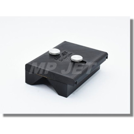 Urządzenie wykorzystuje dwa papiery ścierne o wymiarach 30 x 45 mm. Sposób ich rozmieszczenia pokazano na zdjęciu produktu – papier ścierny umieszcza się na zewnętrznej krawędzi urządzenia (tak, aby pośrodku pozostała szczelina na szlifowany materiał) oraz na liniach lokalizacji.