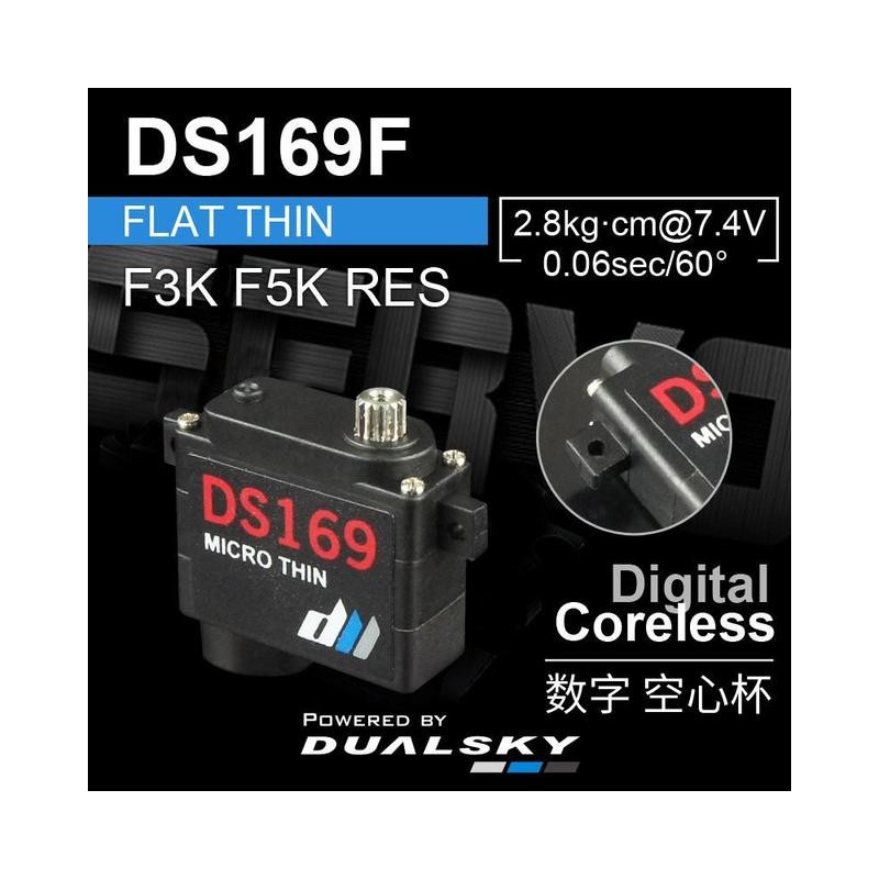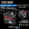 Serwo DS169F z „uszami” do mocowania ułożonymi równolegle do płaszczyzny obudowy. Wszystkie parametry są takie same jak DS169.