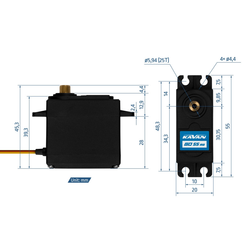 Bardzo mocne cyfrowe serwo GO-55MG firmy Kavan.