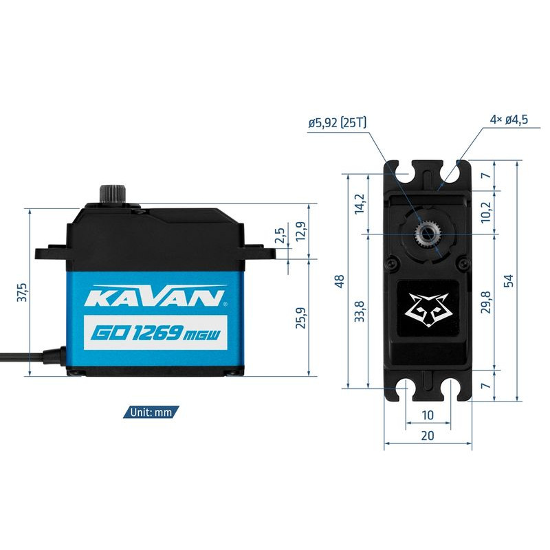 Programowalne cyfrowe serwo wodoodporne z metalowymi zębatkami i dwoma łożyskami kulkowym do stosowania w modelach: samolotów, samochodach i łodziach. Dla doskonałego chłodzenia nawet przy dużym obciążeniu serwo jest w aluminiowej obudowie.