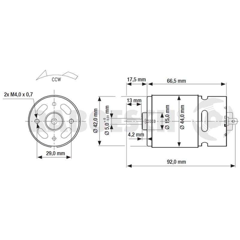 Szczotkowy silnik elektryczny Blue RM730 TRQ 12V wyprodukowany przez holenderską firmę RABOESCH.