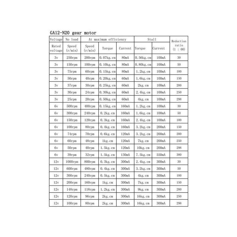 Mini silnik szczotkowy GA12-N20 - 100RPM - 1-6V z przekładnią.