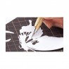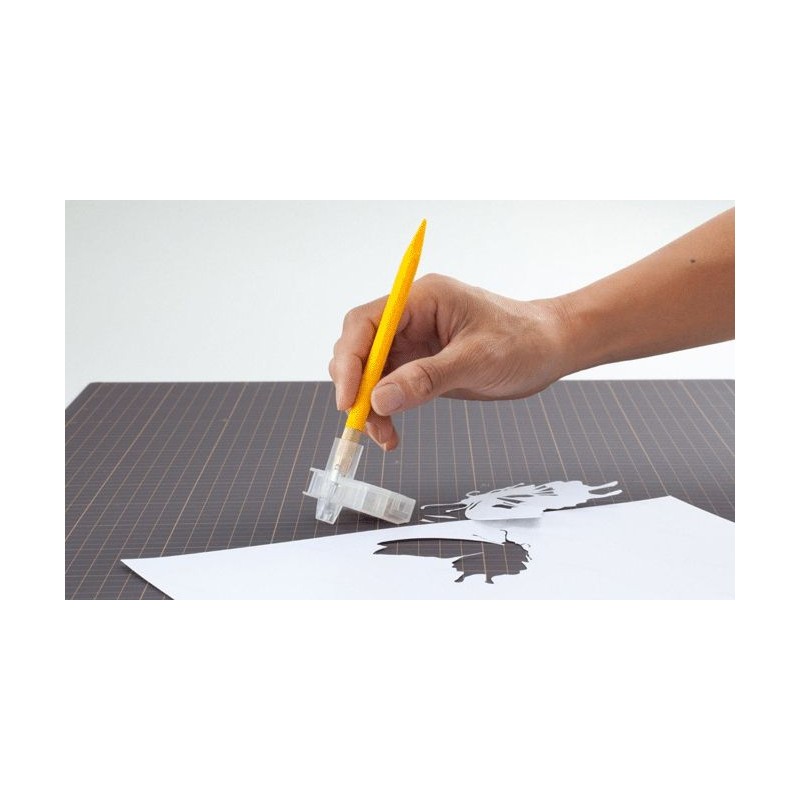 Metalowy zacisk pozwala na pewne unieruchomienie ostrza w uchwycie jak i łatwą jego wymianę. Ostrza KB-5 o szczególnie ostrym wierzchołku pozwalają na precyzyjne wycinanie detali. 30 ostrzy zapasowych w nowym pojemniku/podstawce wraz z przydatną przy różnego rodzaju pracach modelarskich igłą o długości 20 mm i średnicy 1,6mm
