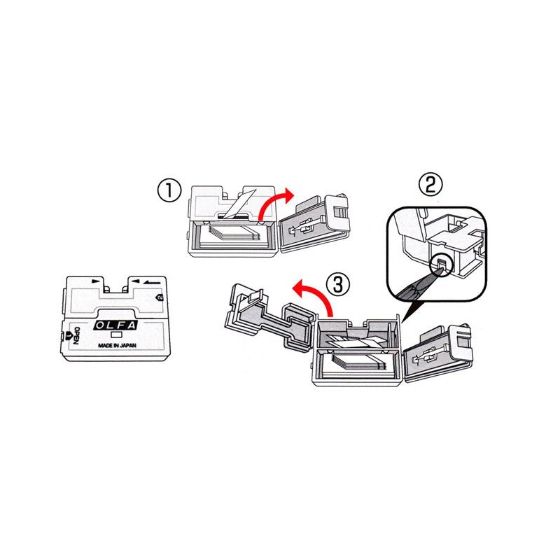 Ostrza OLFA są niezwykle ostre. Podczas cięcia i wymiany ostrza zachowaj szczególną ostrożność. Zużyte ostrza mogą być również niebezpieczne - przed wyrzuceniem zabezpiecz je wykorzystując np. pojemniki, w których dostarczane są nowe ostrza lub też skorzystaj ze specjalnych pojemników OLFA DC-2 i DC-4.