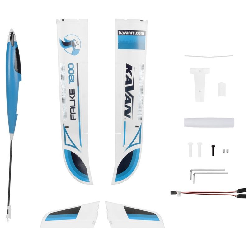 Do sterowania modelem w sytuacjach awaryjnych można również użyć czterokanałowego zestawu RC z mikserem dla usterzenia ogona motyla - w podstawowej konstrukcji lotki są podłączone tylko do jednego kanału za pomocą kabla Y. Ideałem jest oczywiście wykorzystanie co najmniej sześciokanałowego zestawu komputerowego RC umożliwiającego niezależne sterowanie lotkami przez dwa serwa i ich miksowania w roli hamulca aerodynamicznego (obie lotki wychylają się w górę zgodnie), co nawet niedrogie Radiolink AT9S lub AT10II lub Futaba T6K lub T10J może zrobić dzisiaj. W takim przypadku należy wymienić kabel Y lotek w kadłubie na dwa (15-30 cm) przedłużacze. Oczywiście instrukcja zawiera dokładną tabelę ze sprawdzonymi domyślnymi ustawieniami wychylenia steru (w tym miksów), dzięki czemu można łatwo przygotować FALKE do lotu.