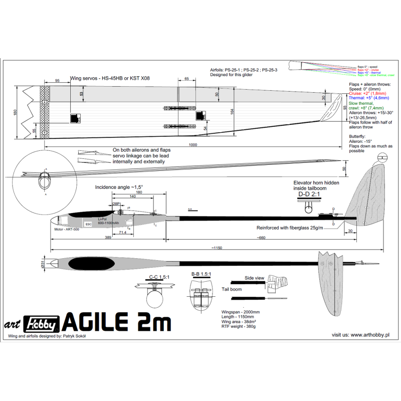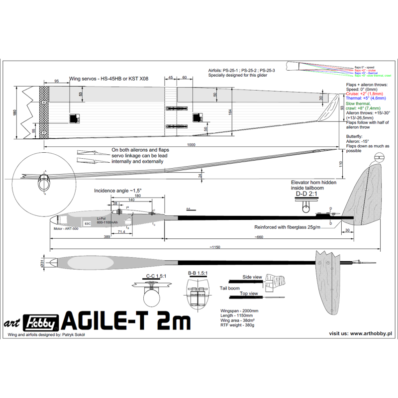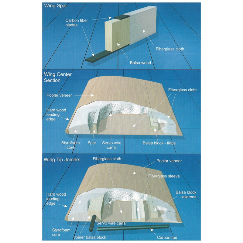 Kadłub wykonany z laminatu, skrzydła z rdzeniem styropianowym z lotkami i klapami pokryte fornirem. Model należy pomalować lakierem celulozowym (dedykowany przez producenta lakier - zobacz TU).