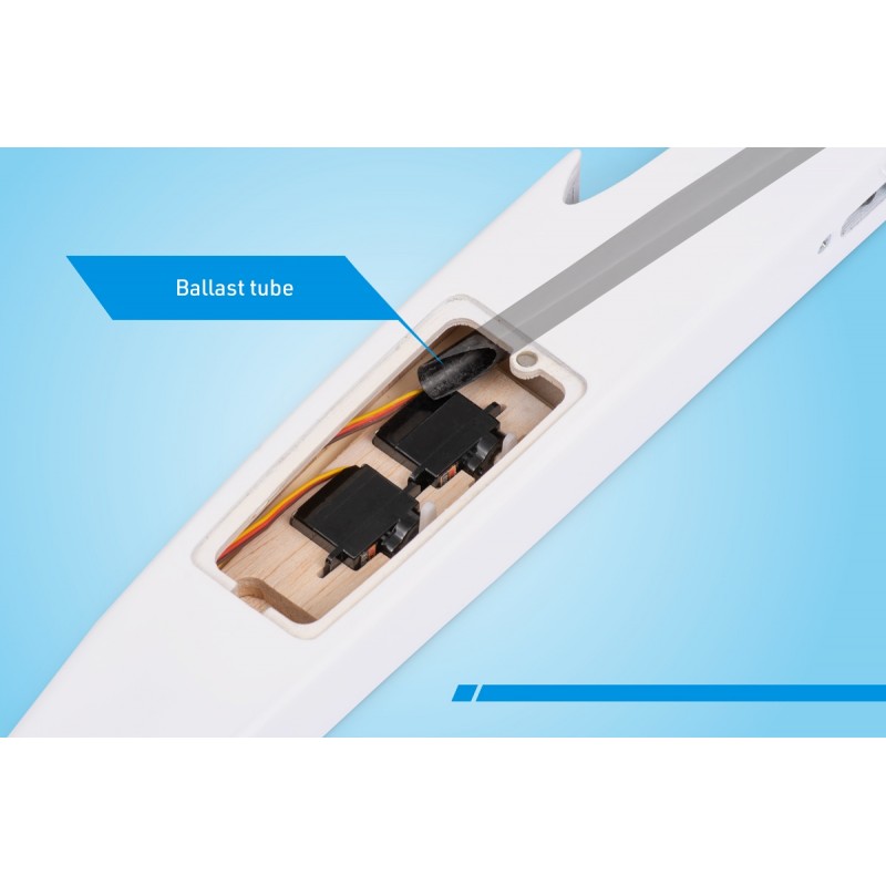 W przypadku motoszybowca serwa są umieszczone w przestrzeni pod skrzydłem. Ogon kadłuba składa się z belki wykonanej z rurki węglowej z przyklejonym pylonem z rdzeniem z lekkiej sklejki pokrytej balsą dla zabezpieczenia poziomej powierzchni ogona. Wersja szybowcowa oferuje również rurkę węglową w przestrzeni pod skrzydłem, w której można umieścić dodatkowy balast który zwiększy zakres warunków w których modelem da się latać (mocniejszy wiatr i delikatna turbulencja a także loty żaglowe na zboczu przy słabym wietrze ). Takie rozwiązania posiadają wyczynowe modele szybowców .