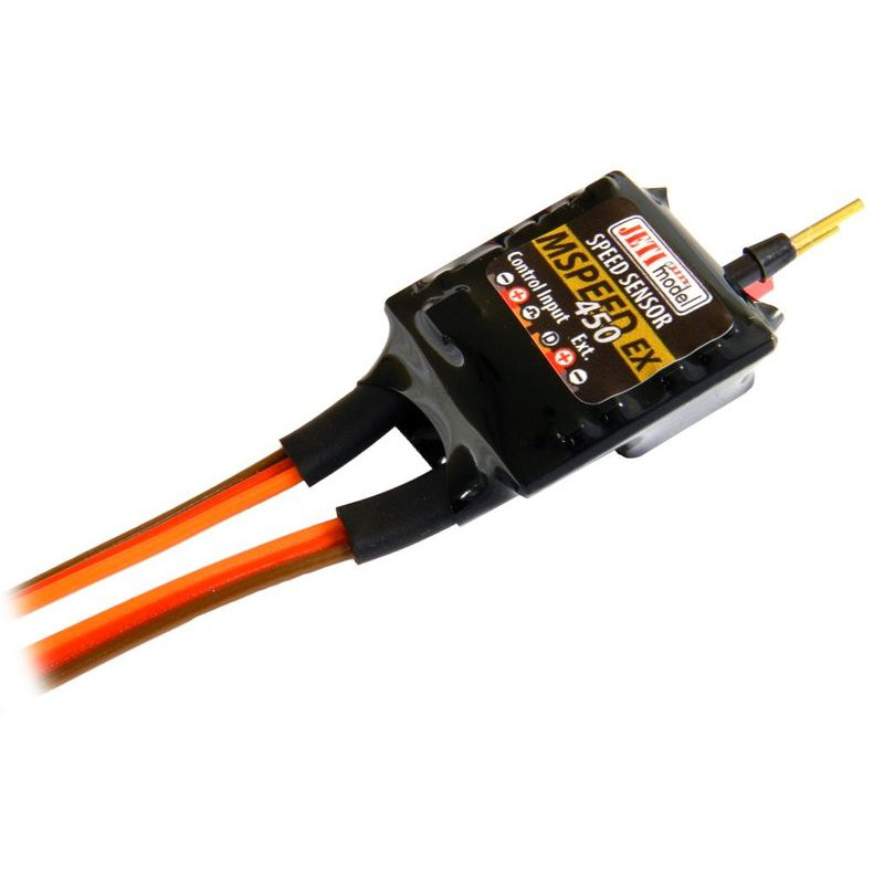 MSPEED 450 EX to czujnik, który mierzy prędkość lecącego modelu w powietrzu aby zapewnić wskazaną prędkość lotu (IAS). Podawanie prędkości lotu może być pomocne dla pilota, na przykład umożliwiając pilotowi określenie prędkości przeciągnięcia modelu i ustawienie alarmu kiedy model zbliży się do prędkości krytycznej. Prędkość maksymalna: 450 km/h Kolejną funkcją czujnika jest umożliwienie pilotowi ustawienia żądanej prędkości oraz stopnia powyżej lub poniżej tej prędkości, przy której moduł nadajnika powinien włączyć sygnał dźwiękowy. Aby ułatwić odczyt wskazywanej prędkości lotu, wyświetlany jest wykres słupkowy, zaznaczający odpowiednio skonfigurowane kroki. Pomiar prędkości powietrza opiera się na zasadzie zmiany ciśnienia dynamicznego mierzonego za pomocą rurki Pitota połączonej silikonową rurką. Za pomocą bezprzewodowego systemu Duplex informacje z czujników mogą być przesyłane pilotowi w czasie rzeczywistym, umożliwiając natychmiastową informację zwrotną dotyczącą zmian prędkości lotu i odchyleń od skonfigurowanych kroków.