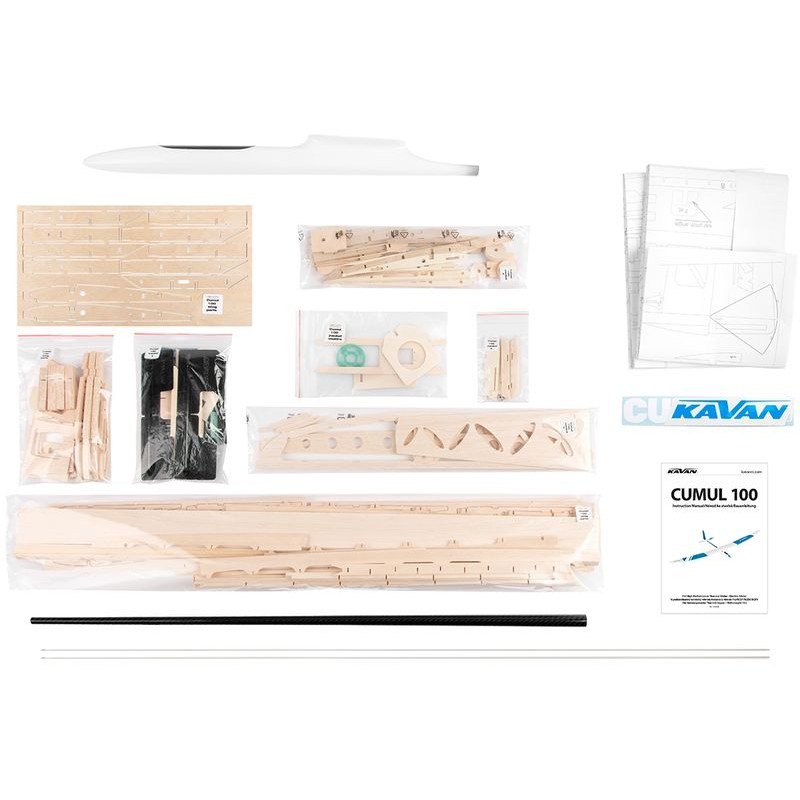 Zestaw wysokowydajnego szybowca termicznego o klasycznej, bardzo lekkiej konstrukcji all-balsa, luzem, który można również łatwo zmodyfikować tak, aby był napędzany silnikiem elektrycznym KAVAN C2836/AXI 2217 AC. CUMUL 100 to idealny projekt dla modelarzy którzy chcą zbudować naprawdę potężny model do latania rekreacyjnego i wyczynowego. Dzięki przemyślanej konstrukcji z wycinanymi CNC częściami wyposażonymi w wypustki i nacięcia, które pasują do siebie niczym elementy układanki, konstrukcja jest bardzo szybka i łatwa. Z Cumulum 100 nie zgubisz się w zawodach F5J ani w różnych klasach „enduro”. Zestaw zawiera części kadłuba zarówno dla czystego szybowca, jak i elektrolotu. Budowa przebiega dość szybko i nie ma w tym zbyt wiele – CUMUL 100 to wciąż stosunkowo prosty model, ale nie jest przeznaczony dla początkujących.