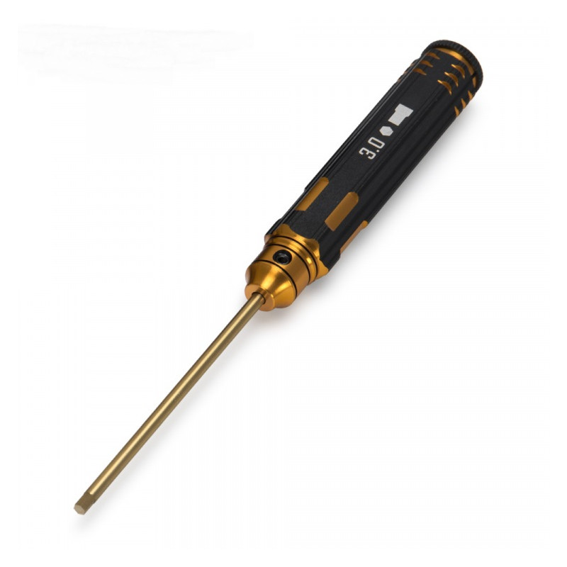 Wkrętak imbusowy PRO z aluminiową radełkowaną rękojeścią anodowaną w kolorze czarnym. Końcówka - część robocza wykonana z wysokiej jakości stali HSS.
