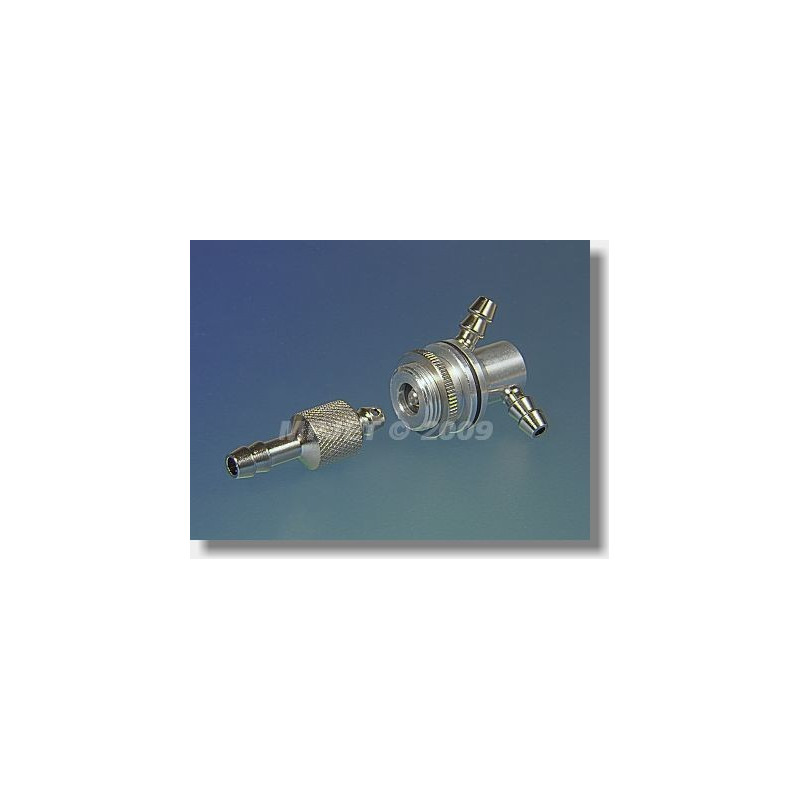 Precyzyjnie wykonany aluminiowy automatyczny dwukierunkowy zawór do tankowania paliwa firmy MP Jet. Umożliwia tankowanie modelu bez rozłączania wężyków paliwowych.