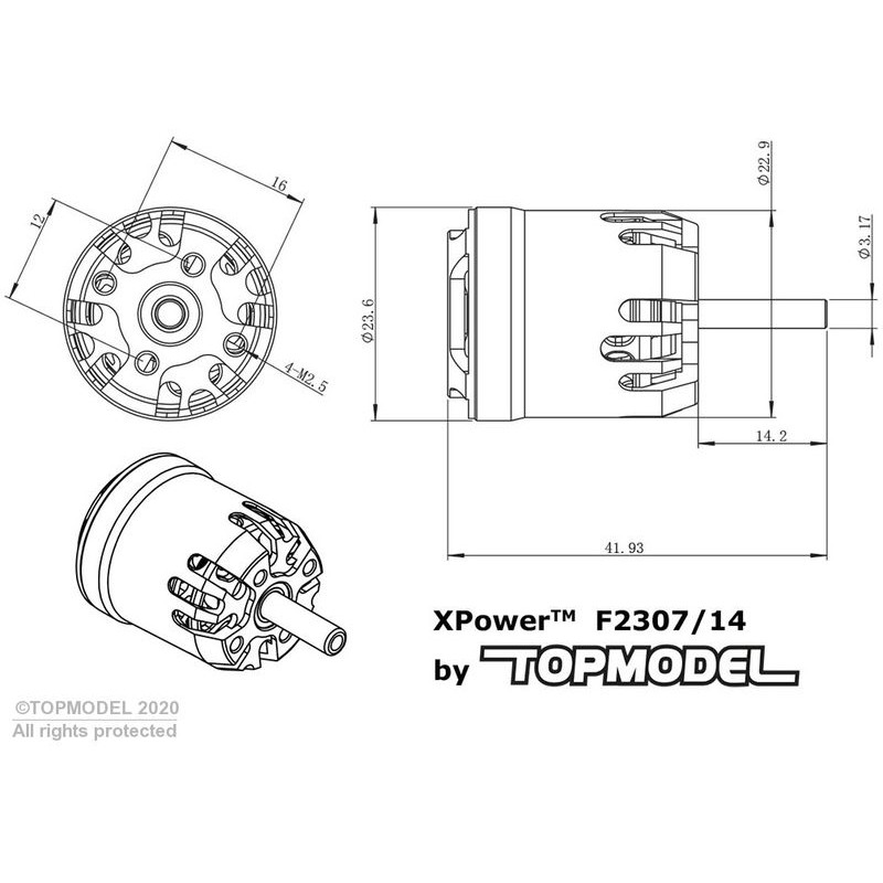 Silnik typu outrunner zamknięty w dodatkowej obudowie z kablami wyprowadzonymi z tyłu, dzięki czemu nie ma problemu z montażem w ciasnych kadłubach np. szybowców. Silnik posiada zintegrowany wentylator.