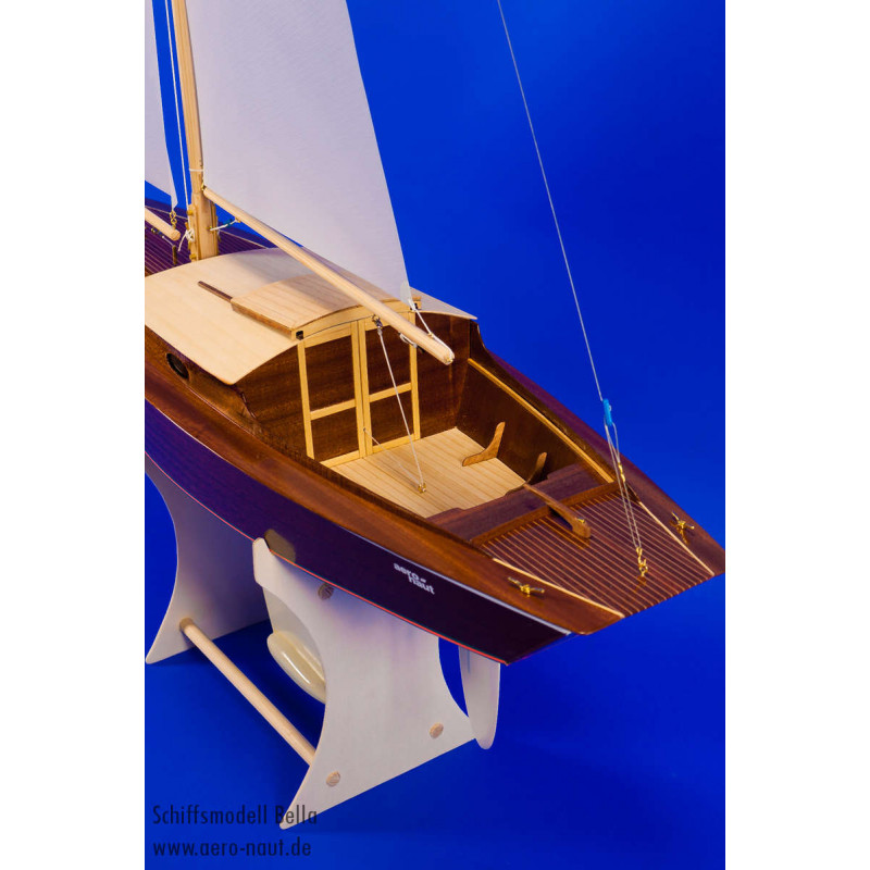Bella to przepiękna zdalnie sterowana balastowa łódź żaglowa z dużą ilością prawdziwego drewna mahoniowego w wersji Kit, niemieckiej firmy Aero-Naut. Łódź jest zbudowana w wypróbowanej i przetestowanej konstrukcji chirowej na płytce jigowej Depron, którą Aero-Naut wprowadził do łodzi Classic. Konstrukcja jest tak prosta, że model może z powodzeniem zbudować również początkujący. Zdejmując dach masz łatwy dostęp do wbudowanego systemu RC i przestronnego wnętrza kabiny. W razie potrzeby całą wkładkę kokpitu, która jest zaprojektowana jako wodoszczelna skorupa, można wyjąć poluzowując śrubę. Wtedy kadłub jest otwarty na całej długości od masztu do rufy.
