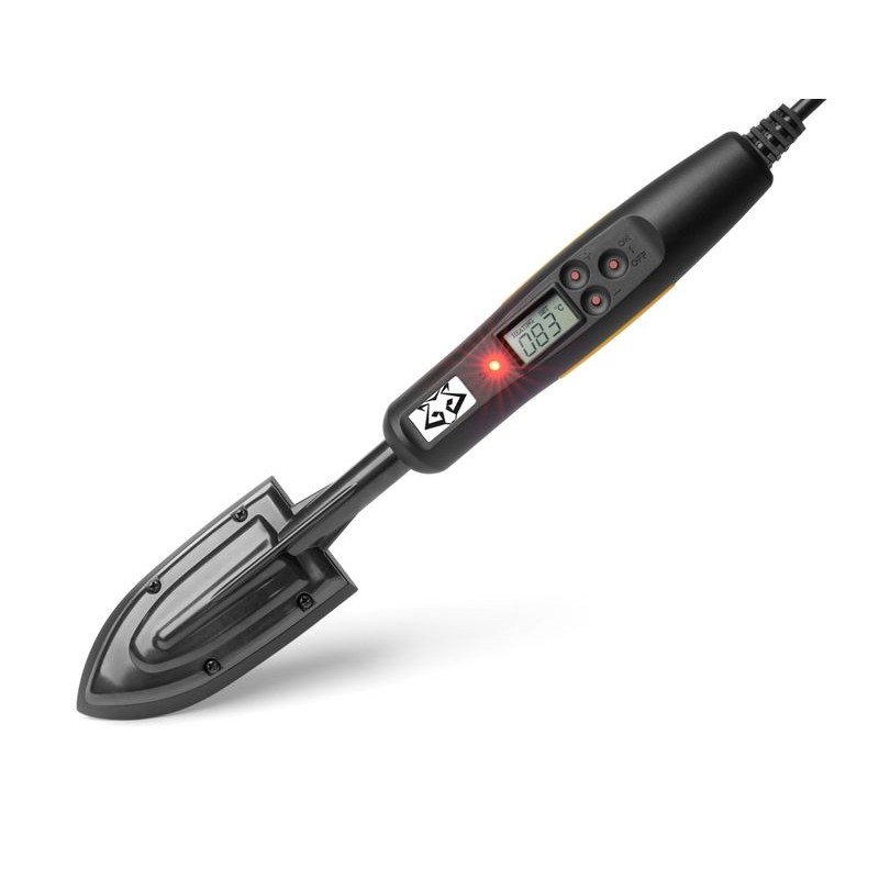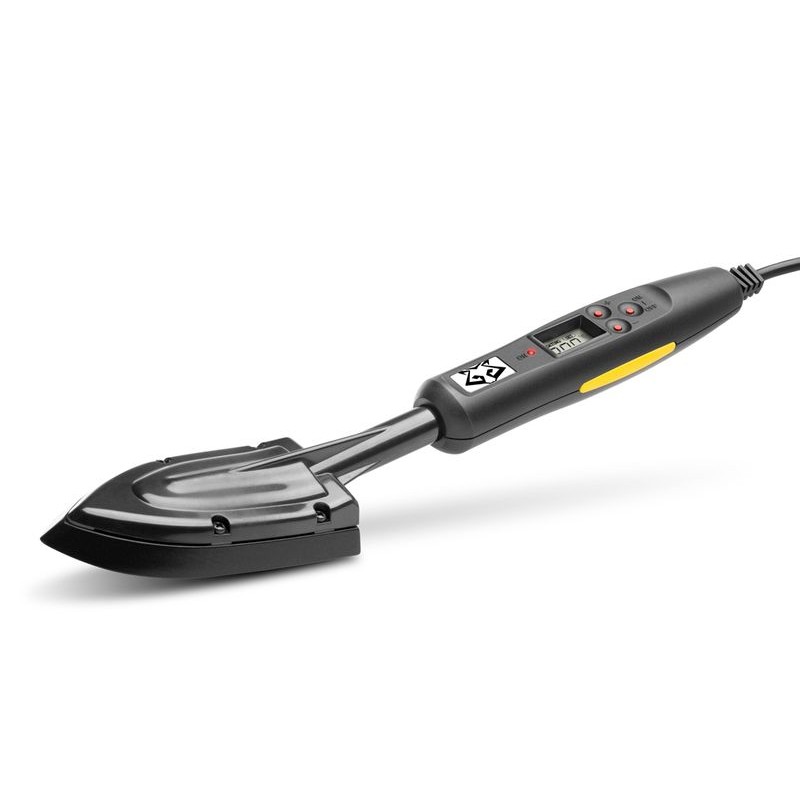 Profesjonalne żelazko modelarskie z korpusem pokrytym teflonem, bardzo precyzyjną elektroniczną regulacją temperatury i cyfrowym wyświetlaniem temperatury pracy na wyświetlaczu LCD.
