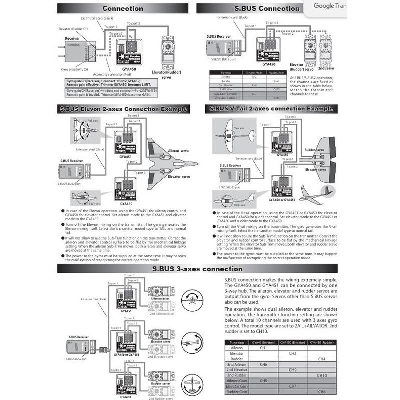 - Sterowanie dwoma osiami jest możliwe przy użyciu dwóch GYA450 lub GYA451 w przypadku korzystania z połączenia łączonego (tylko S.BUS)
